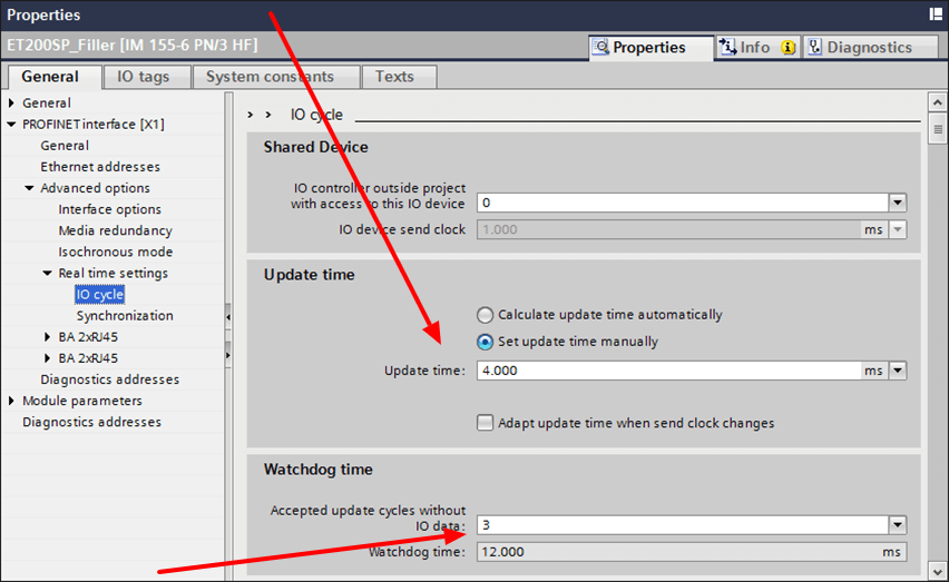 Elk apparaat in het netwerk heeft een bepaalde transmissietijd nodig om zijn informatie te versturen (update time of cycletime). Om betrouwbare overdracht te garanderen, voorziet het communicatieprotocol in een extra tijdsbuffer (response monitoring time, watchdog), meestal ingesteld op driemaal de update time.
