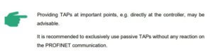 Vanwege deze voordelen staat in de “PROFINET Design Guideline for PROFINET” van de officiële PI-organisatie de aanbeveling om zo’n TAP in iedere installatie te gebruiken (afbeelding 2).